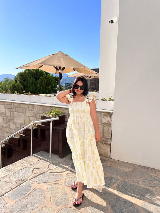 Pondicherry Yellow Maxi Dress with Puff Sleeves