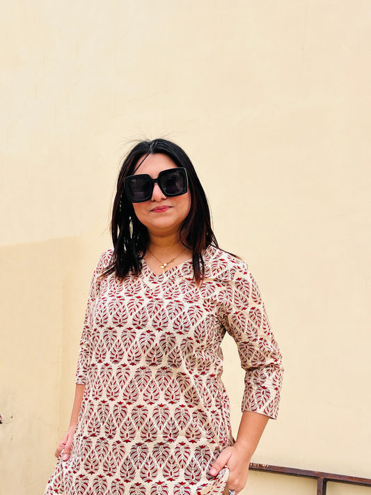 10% OFF"Rose" Bagru Print Kurta