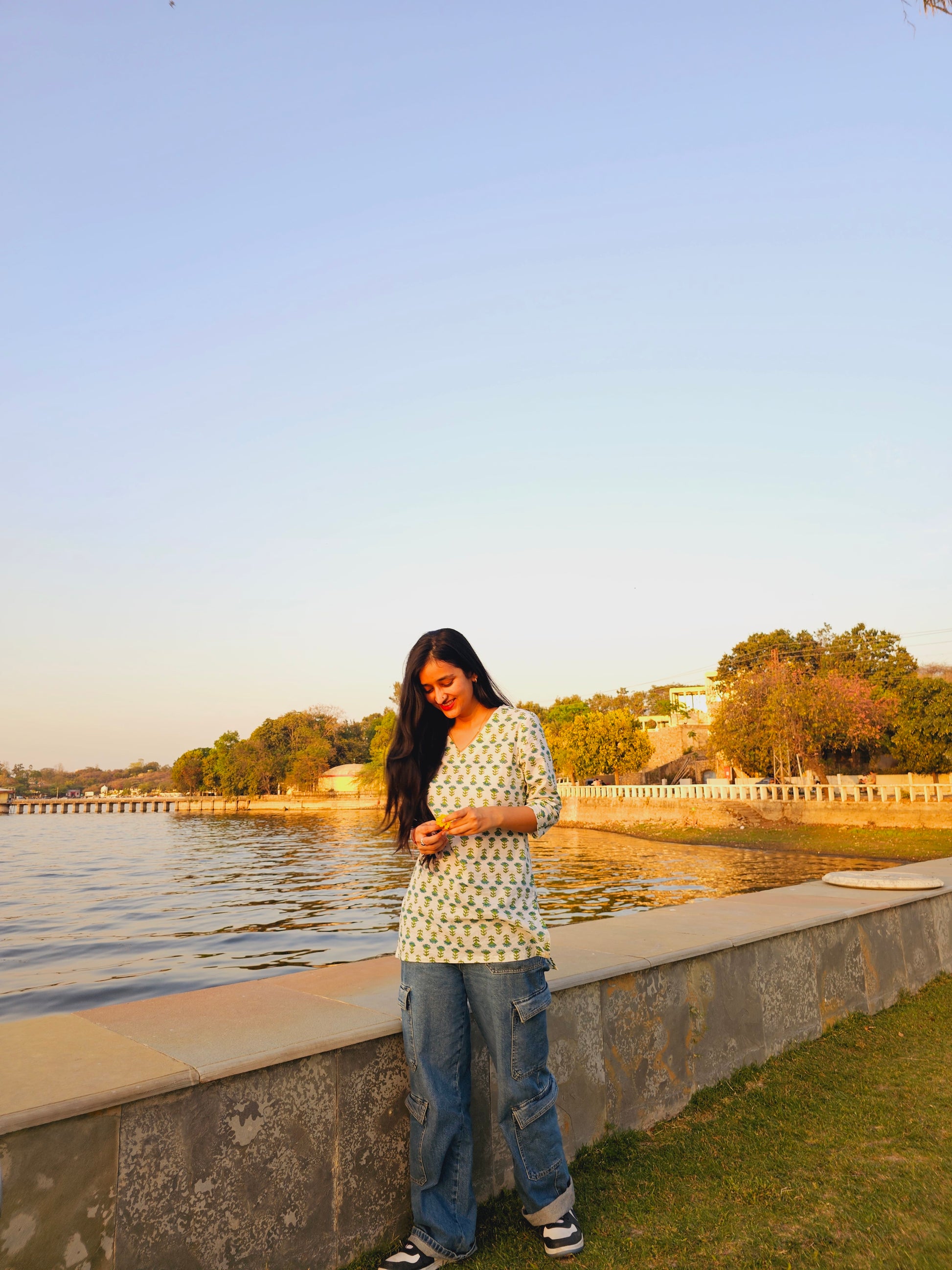 Less is more, but who says minimal can't be playful? This white kurti is the blank canvas for your self-expression. The subtle green Bagru print adds a touch of intrigue without stealing the show ✨. Pair it with anything and everything - it's the chameleon of your closet, ready to adapt to any adventure ✈️