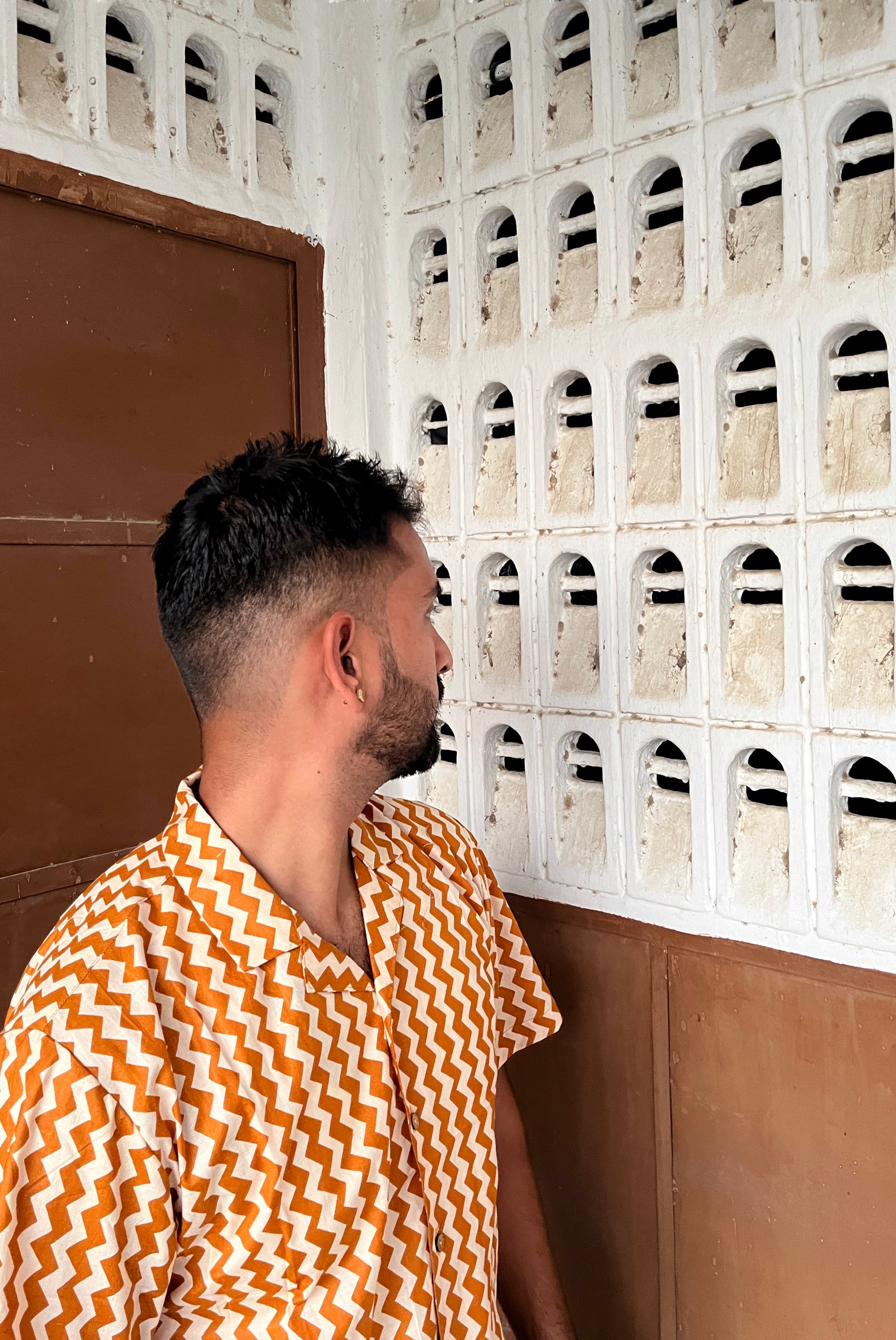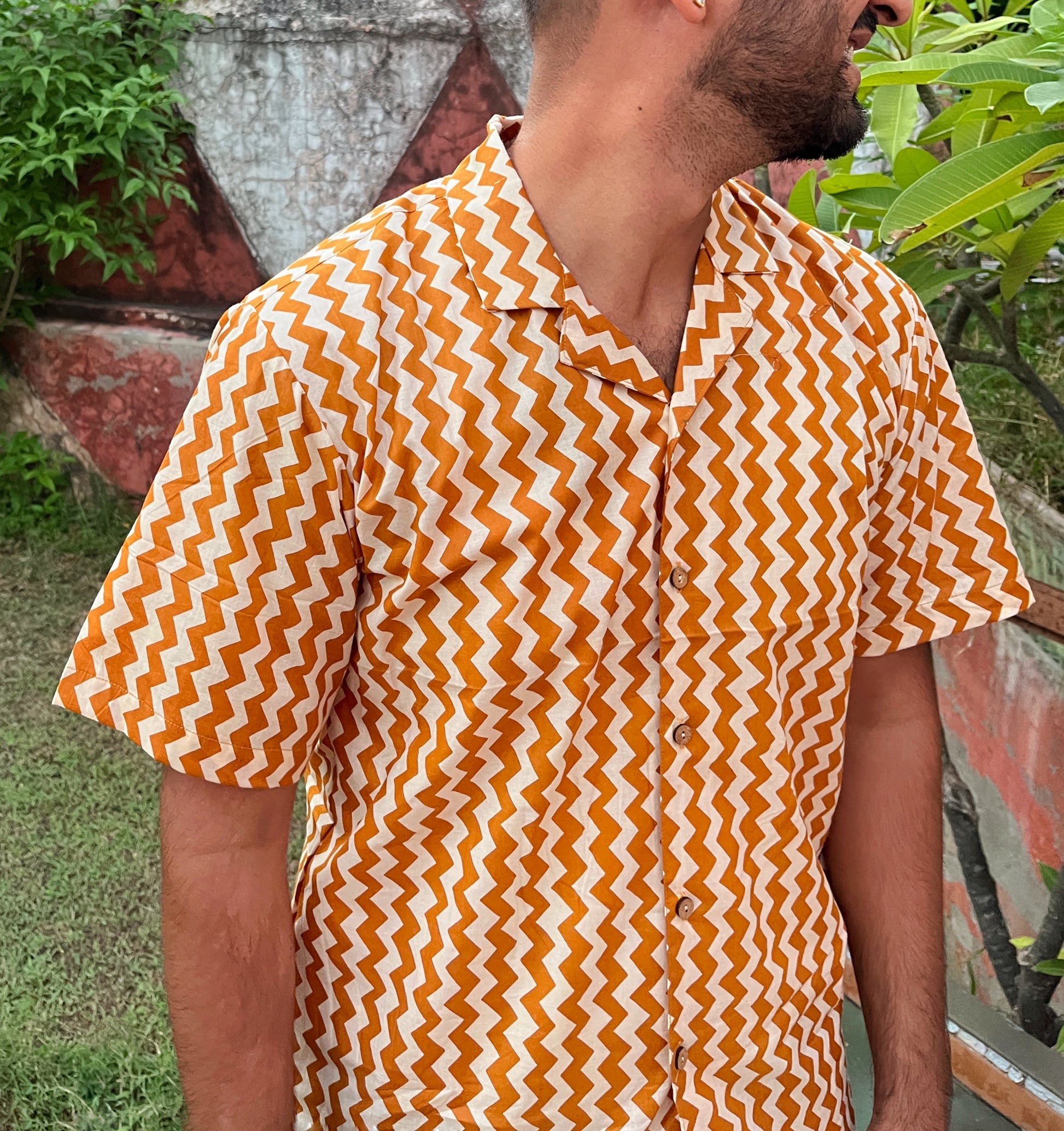 The shirt boasts a stylish zig-zag pattern adding a touch of sophistication and vibrancy to your look.
