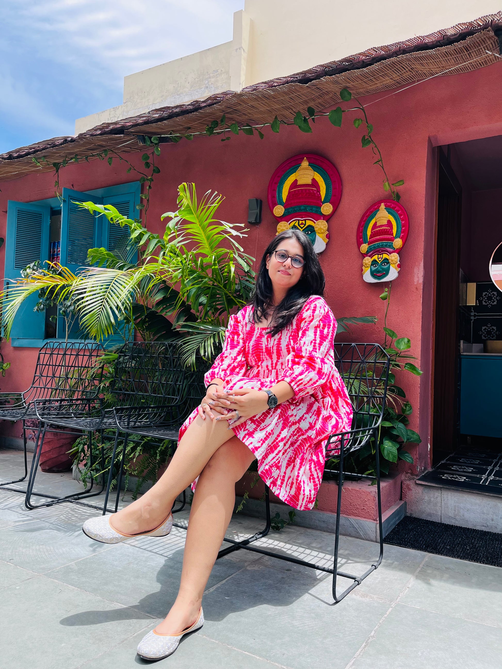 Indulge in the flirty charm of this dress, where a dazzling hand screen print adds a splash of excitement to your style. ๐บ