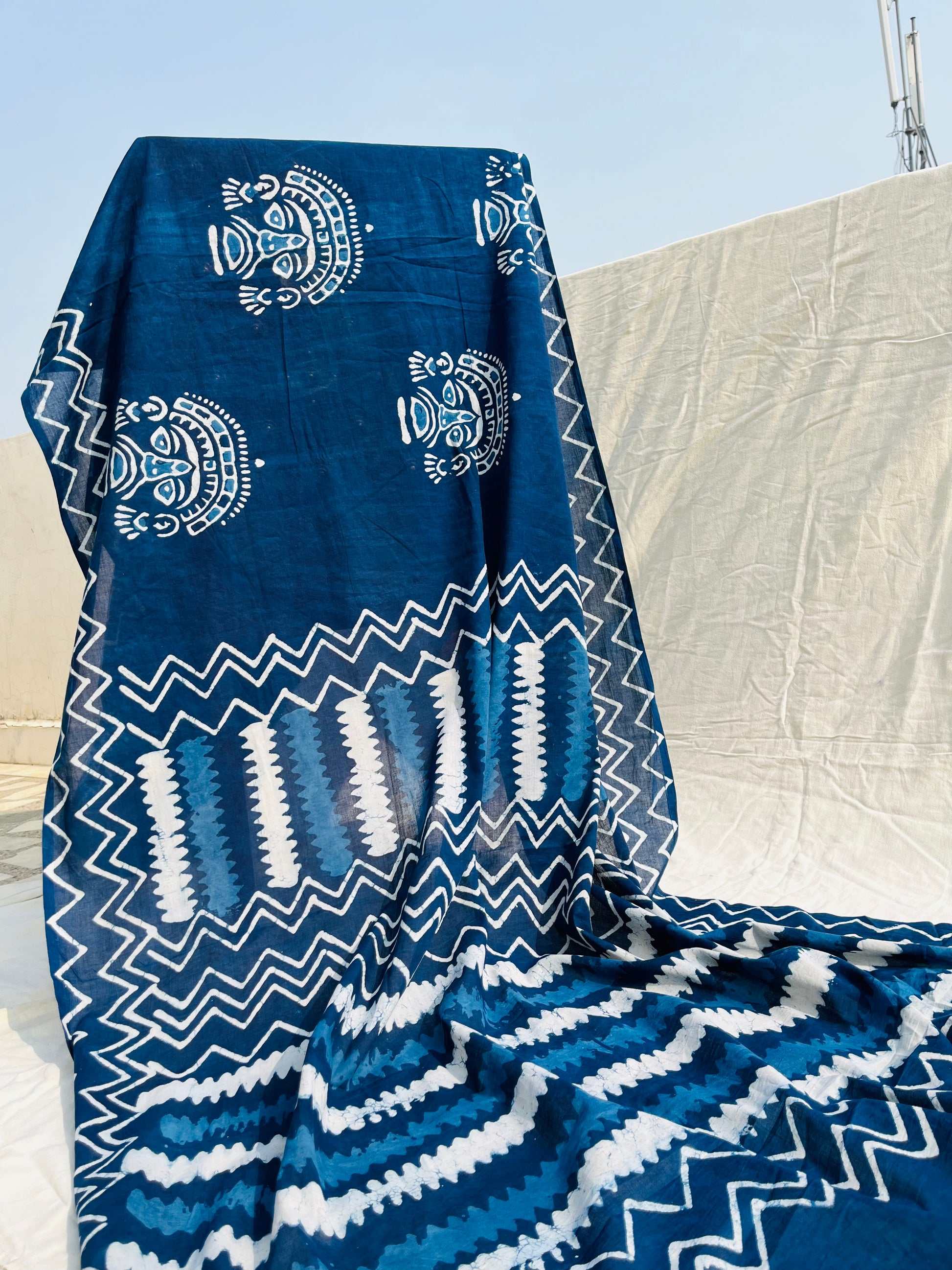 The blend of indigo and white in this saree allows for versatile styling. Pair it with traditional jewelry for a classic look, or keep it simple with contemporary accessories for a modern twist. The choice is yours!