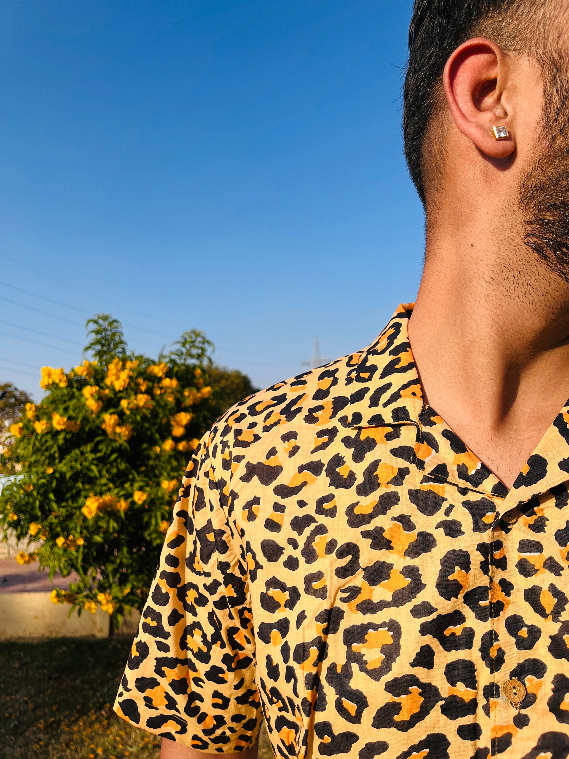 Love tropical prints? This leopard print shirt isn't for the faint of fashion. It's for the guy who embraces bold style and isn't afraid to turn heads.ย