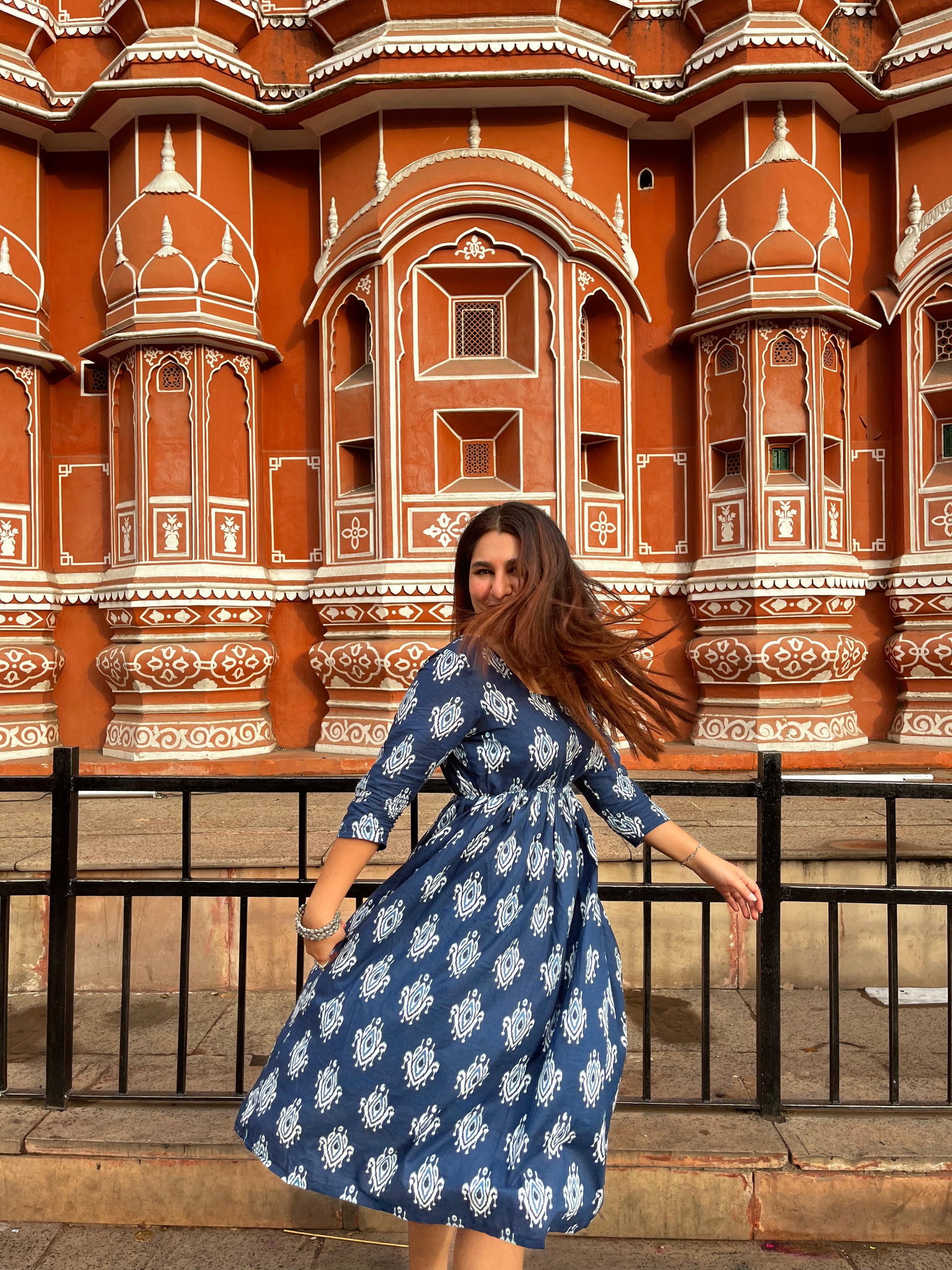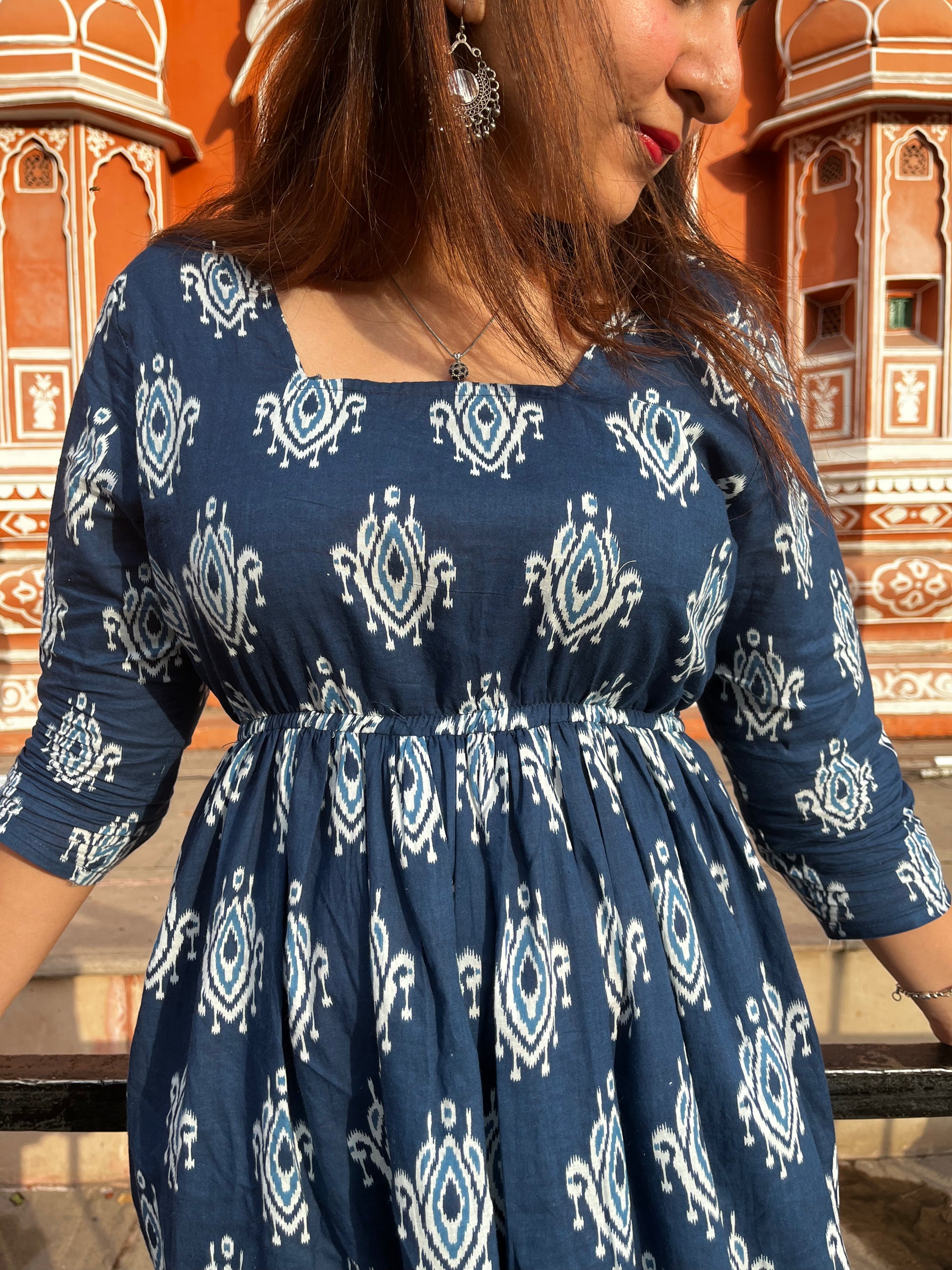 Whether it's a charming afternoon tea or an enchanting evening soiree, the "Mystic Blue" Hand Screen Print Midi Dress will make you the center of attention🌠🌹 Go bold with statement pieces for an aura of mystery💫