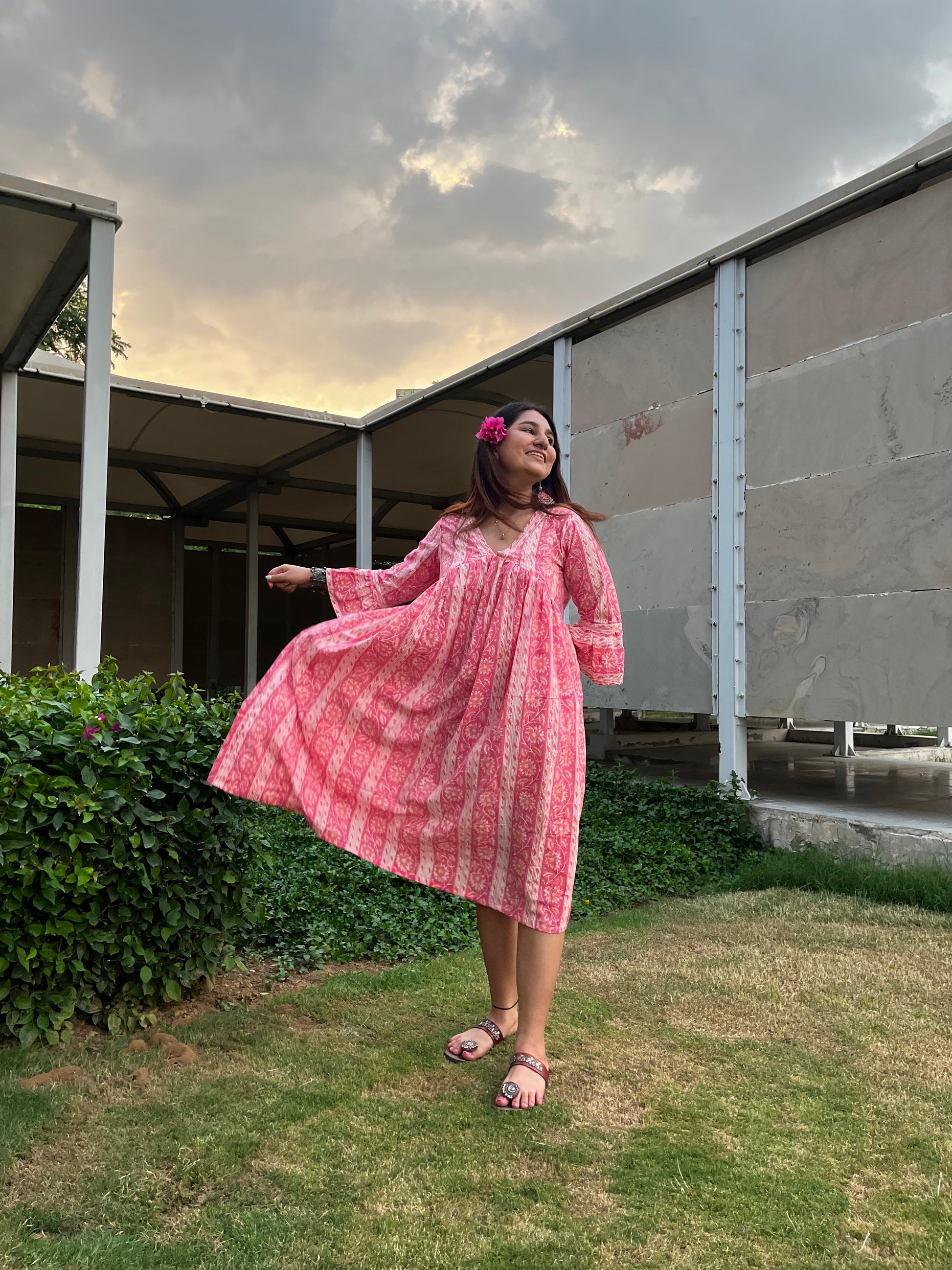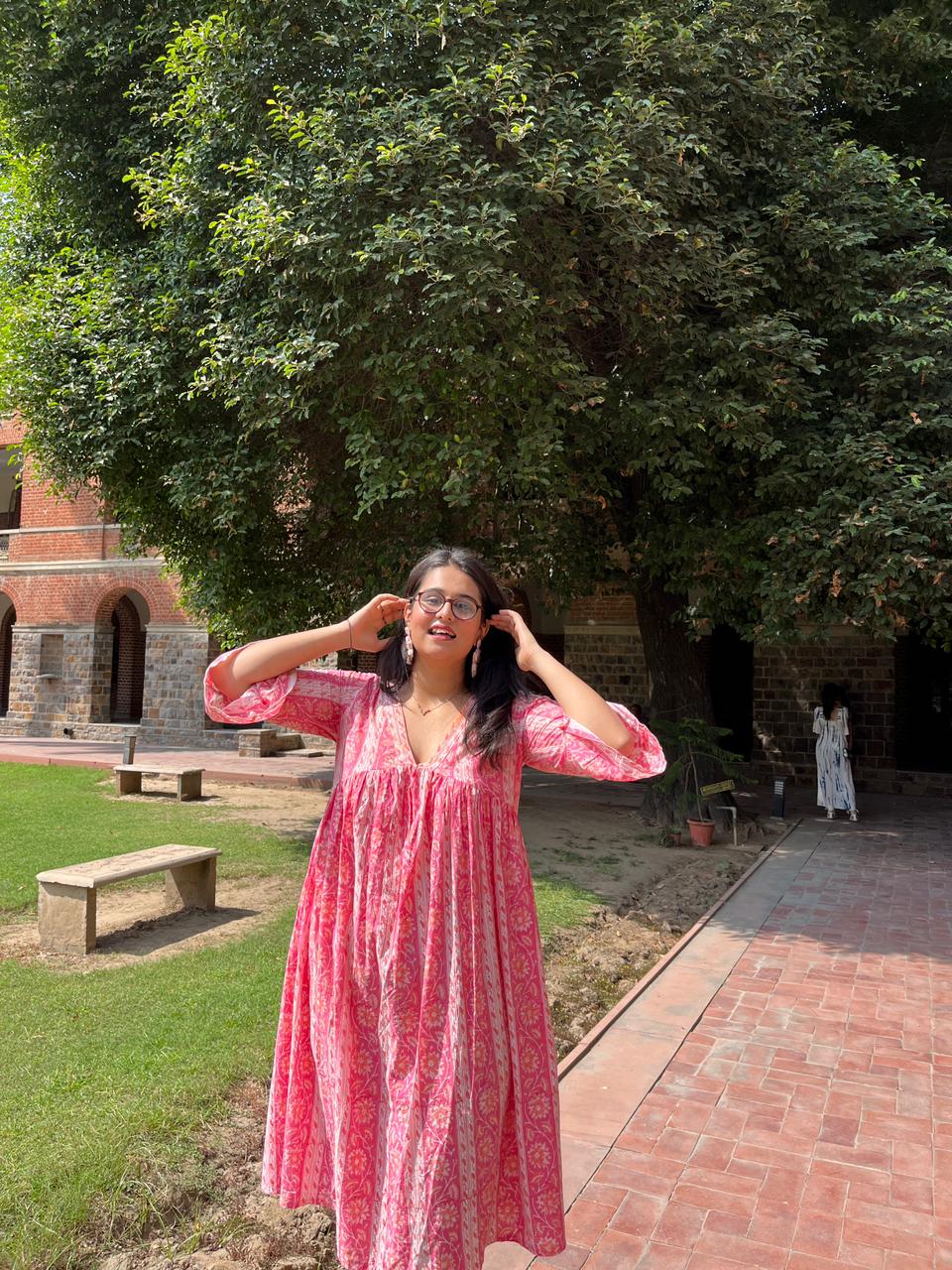 Get ready to be "Pretty in Pink" with our Hand Block Print Midi Dress from Tatvamasi Store โ a delightful blend of style and fun that will have you twirling with joy! ๐๐ย