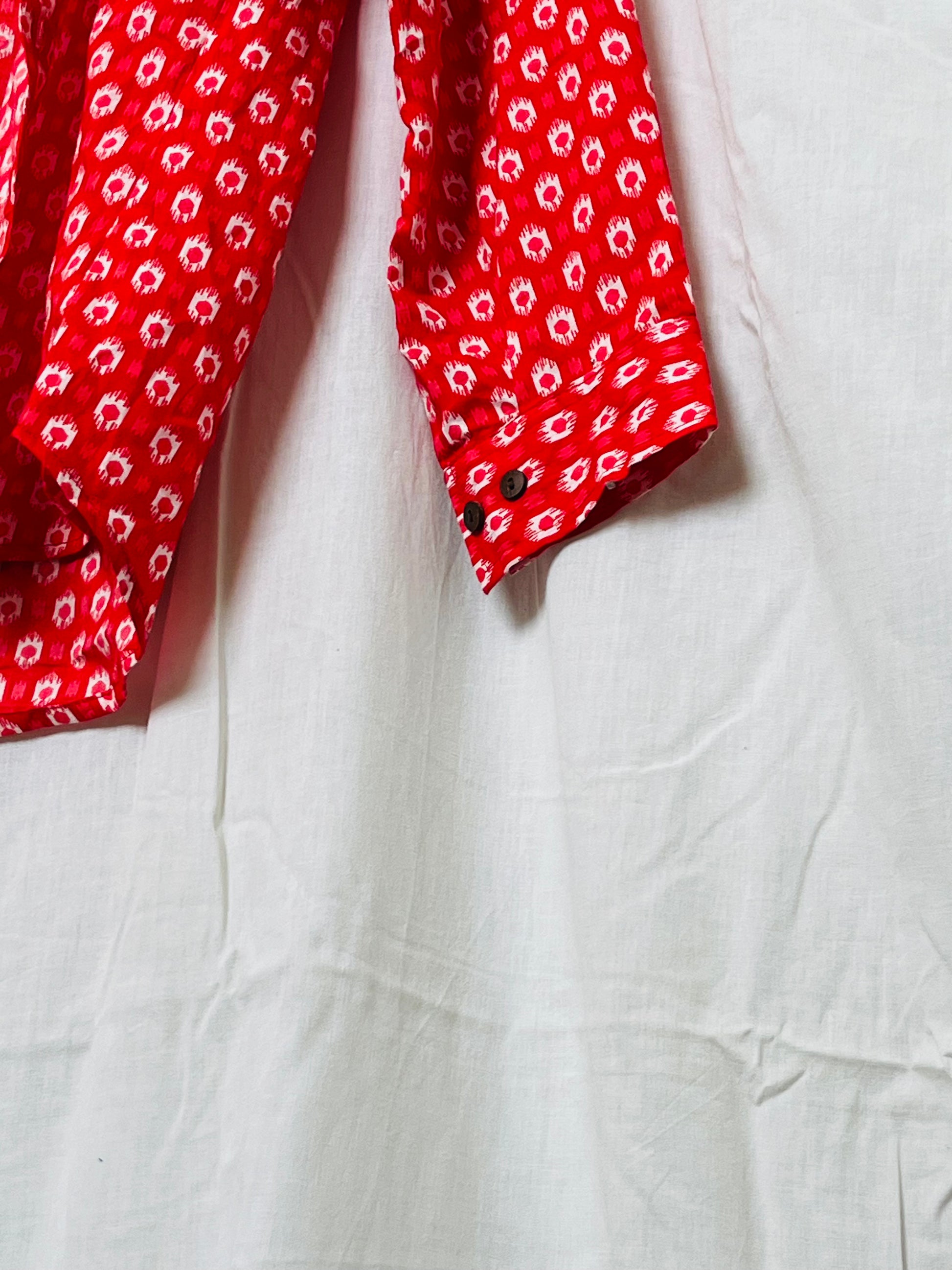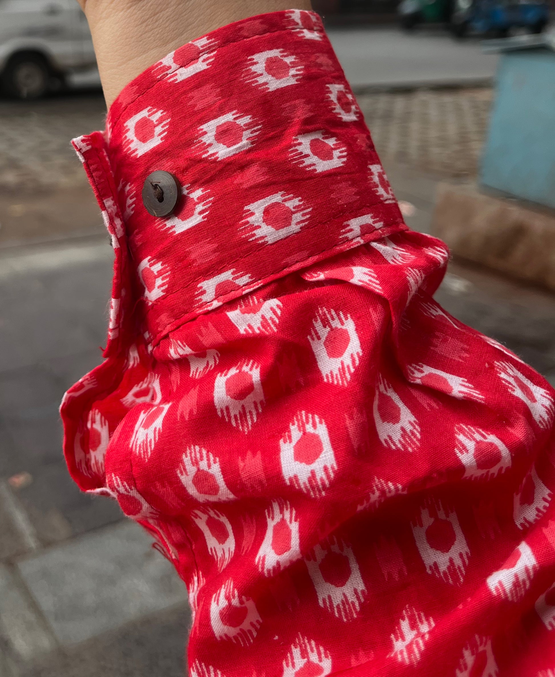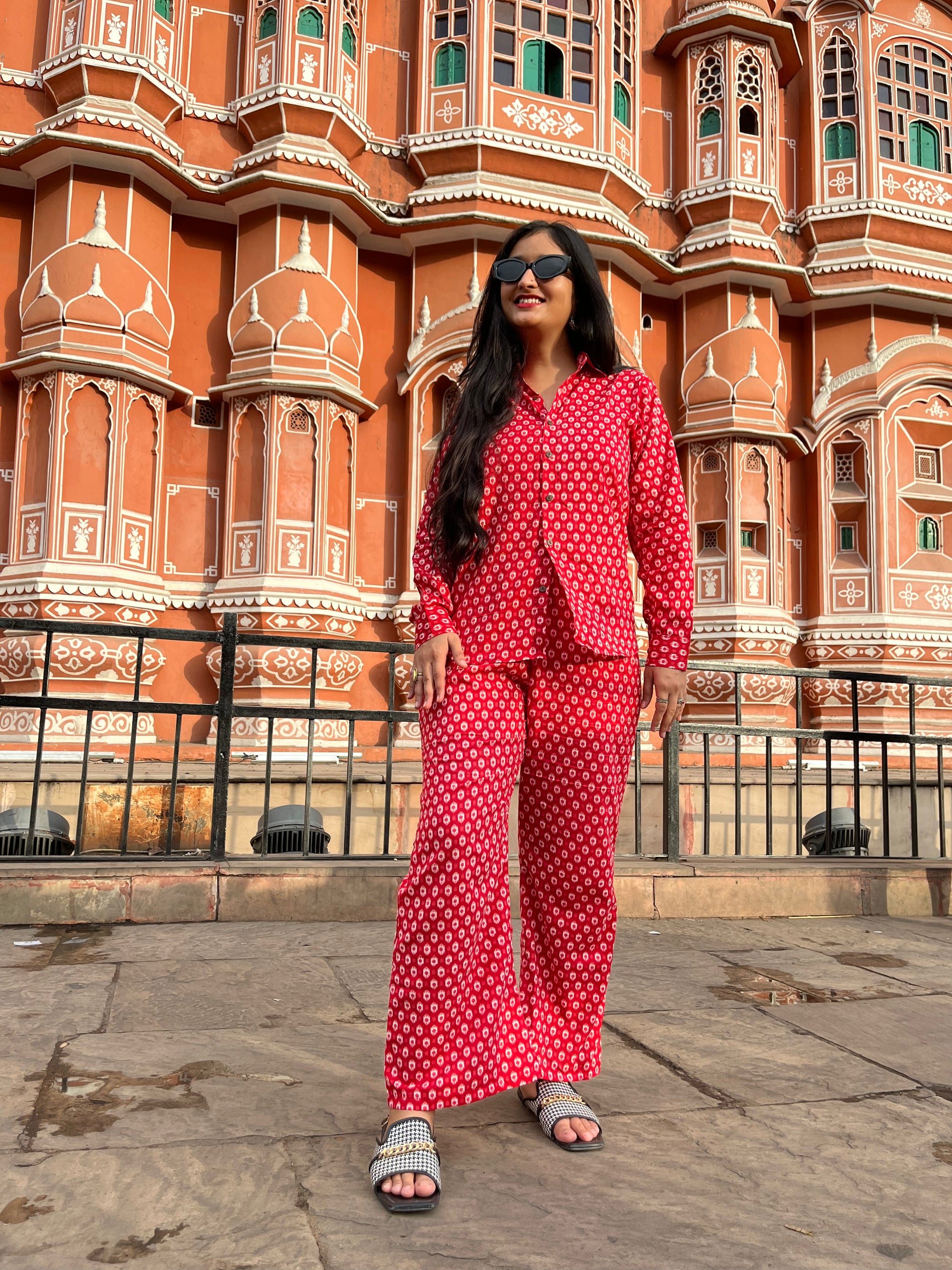 Whether it's a chic day at the office or an enchanting evening affair, the "Ruby Rhythm" Hand Screen Print Co-ord Set will make you the center of attention. 🌹